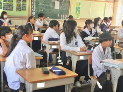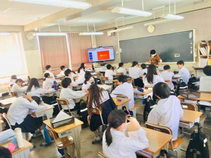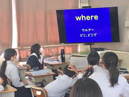 1年生2組の授業(英語)の様子 公開日 2023/10/11 更新日 2023/10/11 学校 11日(水)、1年2組の4時間目は、英語の授業でした。 発音練習では、単語の下にはヒントが表示され、どの生徒も発音しやすいように工夫がされているようです。