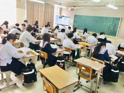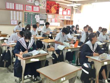 12日(木)、2年生5組の1時間目は、担任の先生による国語の授業でした。