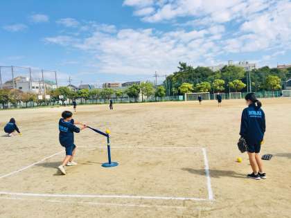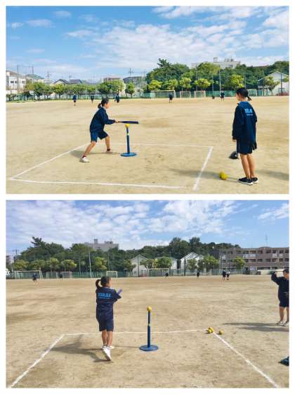 2年生の女子生徒は、保健体育の授業で、ゲーム形式の練習に向けてバッティング練習を行っています。