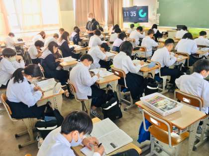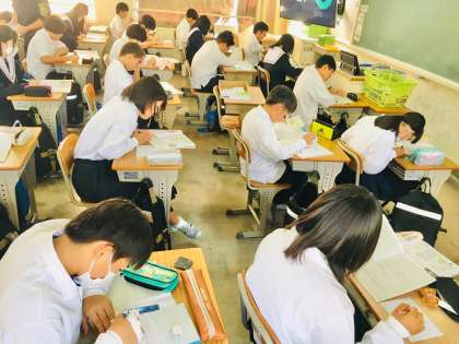 13日(金)、1年生1組の1時間目は、社会の授業でした。