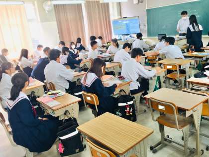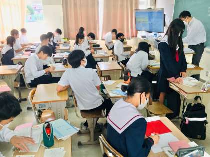 13日(金)、2年生5組の1時間目は、数学の授業でした。
