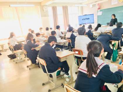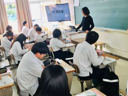 13日(金)、2年生6組の1時間目は、英語の授業でした。
