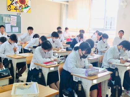 13日(金)、3年生4組の1時間目は、英語の授業でした。