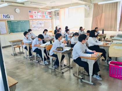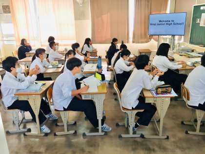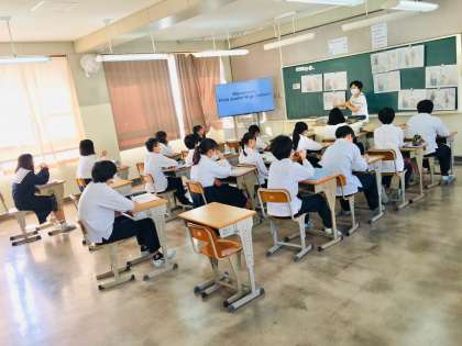 1年生4組の授業(英語)の様子 公開日 2023/10/16 更新日 2023/10/16 学校 16日(月)、1年4組の2時間目は、英語の授業でした。 在籍学級の教室または英語少人数教室(南館B棟3階:1年2組横の教室)で授業を受けるグループに分かれて、生徒は学習していました。 オープンスクールの参観時は、ご注意ください。