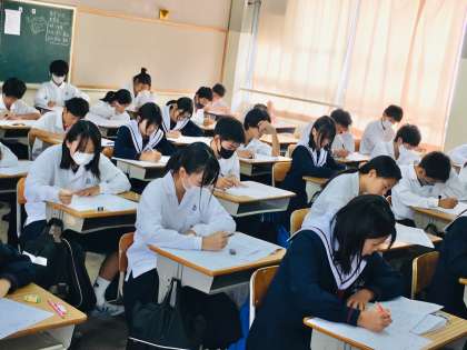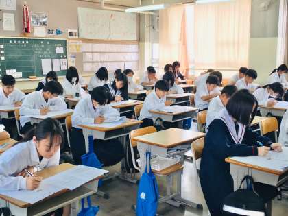 1年生:Listening Test 〜中間テスト〜 公開日 2023/10/17 更新日 2023/10/17 学校 17日(火)、1年生の2時間目の受験教科は、英語でした。 試験では、聞き取りテストが取り入られており、生徒は、自然な速さで話される英語を聞いて、その内容を正しく理解する問題に挑んでいました。 ※写真は、上から順に1〜3組の様子です。