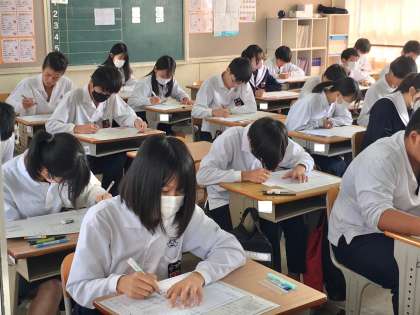 3年生:中間テスト1日目 終了 公開日 2023/10/17 更新日 2023/10/17 学校 17日(火)、3年生中間テストの2日目が終了しました。各教室では、緊張した心持ちで受験にのぞんでいる生徒の姿が多く見られました。 2日目の受験教科は、社会、理科、美術です。普段の学習の成果が十分に発揮されることを期待しています。 ※写真は、上から順に3時間目の1・4・6組の様子です。
