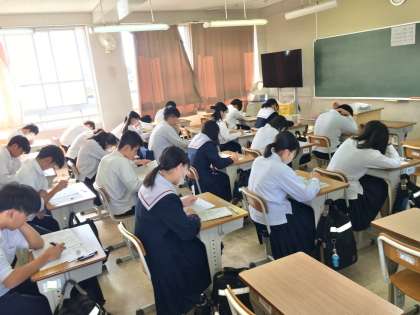18日(水)、3年生の2時間目の受験教科は、理科でした。 ※写真は、1・3・4・7組の様子です