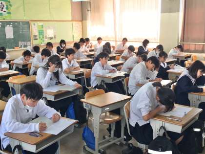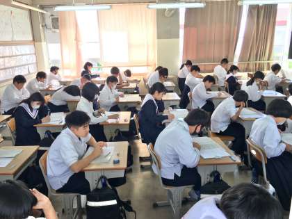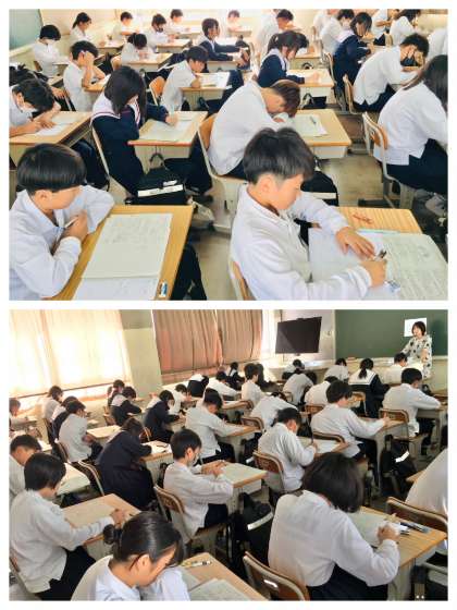 1年生:中間テスト 終了 公開日 2023/10/18 更新日 2023/10/18 学校 18日(水)をもって中間テストが終了しました。 テスト前の勉強も大切ですが、解答用紙返却後のテスト後学習もより重要です。誤答の設問については必ず復習しておきましょう。 ※写真は、2時間目の1・2・3・5組の様子です。
