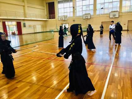 剣道部:猛稽古 公開日 2023/10/18 更新日 2023/10/18 学校 18日(水)、午後4時の体育館ステージ前では、剣道部員が稽古をしていました。 部員は、担当教員から時折送られるアドバイスを参考に、有効打突が確実にできるよう自身の動作を確認していました。