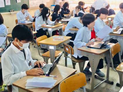 3年生3組の授業(理科)の様子 公開日 2023/10/19 更新日 2023/10/19 学校 19日(木)、3年生3組の1時間目は、理科の授業でした。 中間テストの答案用紙返却後、生徒は、学習の振り返りアンケートに入力をしていました。