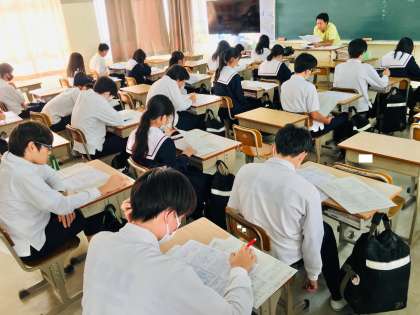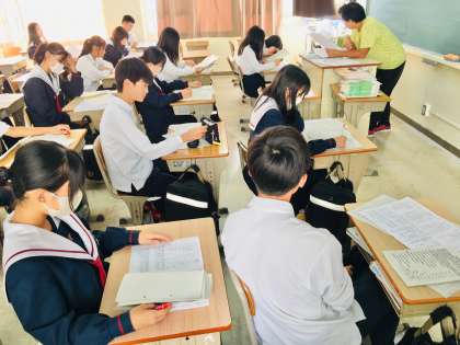 19日(木)、2年5組の1時間目は、担任の先生による国語の授業でした。