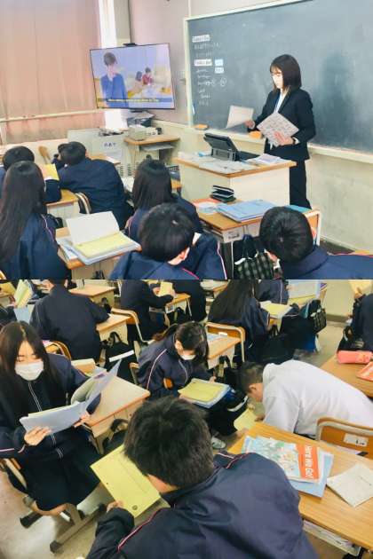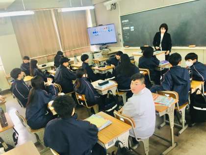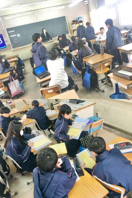 1年生は、英語の授業で、「現在進行形」について学習しています。