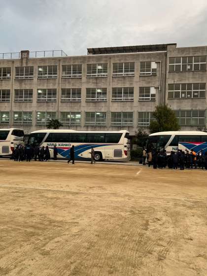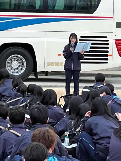出発式が終わり、バスに乗り込みます。予定通りの時間に出発できそうです。