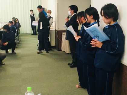 夕食前の入管式です。きちんと挨拶ができました。