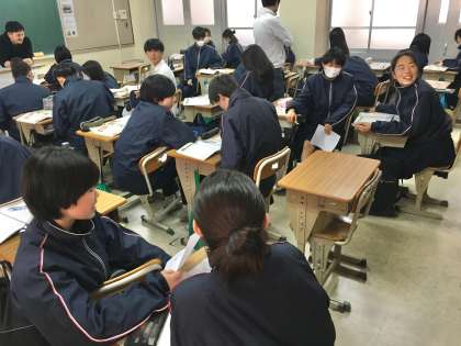 生徒は、序盤こそはやや緊張している様子が見られましたが、中盤以降は、普段の様子で落ち着いて授業にのぞめていました。