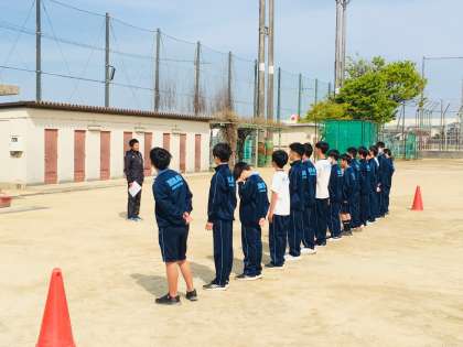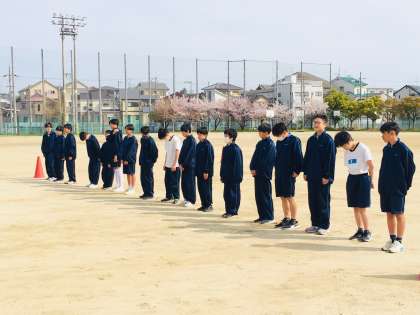 2年生の男子生徒は、保健体育の授業で、グラウンドで「集団行動」の学習に取り組んでいます。