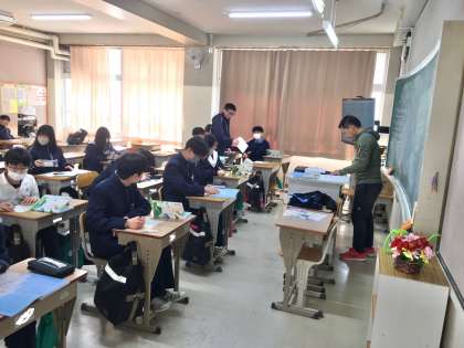生徒は、在籍学級の教室または国語少人数教室(A棟4階南端教室)で授業を受けるグループに分かれて学習していました。