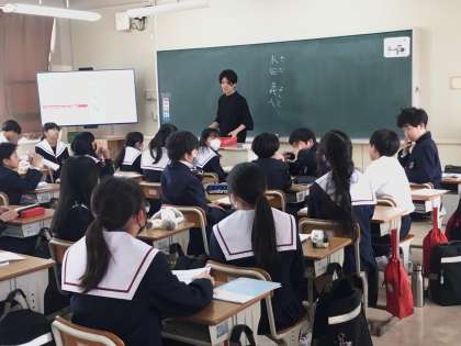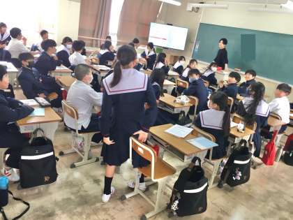 1年生4組の授業(数学)の様子 公開日 2024/04/11 更新日 2024/04/11 学校 11日(木)、1年生4組の5時間目は、1回目の数学の授業でした。担当教員と生徒どうしでの自己紹介が行われていました。