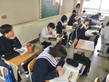 17日(水)、2年生6組の1時間目は、英語の授業でした。