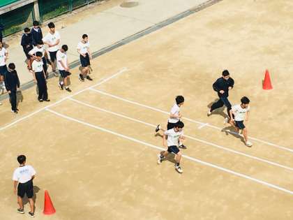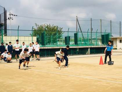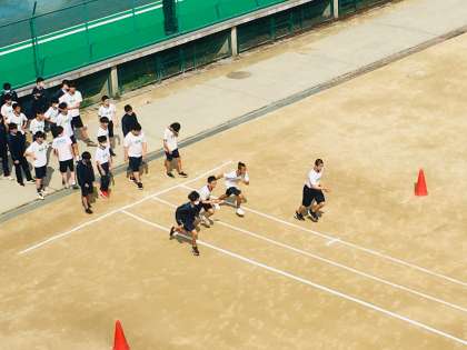 3年生は、保健体育の授業で、短距離走の練習に取り組んでいます。 ※写真は、5・6組の様子です。