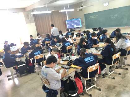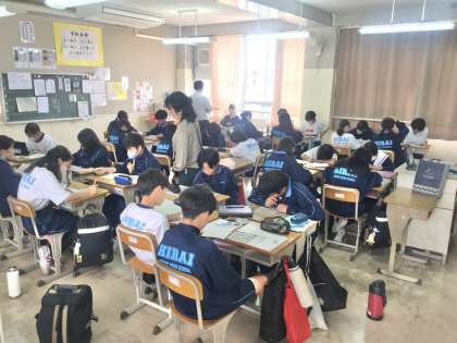 20日(月)、1年生4組の2時間目は、家庭科の授業でした。 グループでの学習が行われていました。