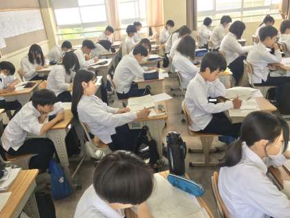 2年生1組の授業(数学)の様子 公開日 2024/05/21 更新日 2024/05/21 学校 21日(火)、2年生1組の1時間目は、数学の授業でした。 先日行われた中間テストの答案用紙が返却され、生徒は、正答できなかった問題のやり直しに取り組んでいました。