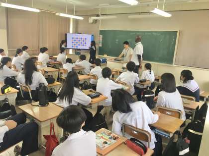 21日(火)、1年生1組の1時間目は、英語の授業でした。 授業には、NSの先生が来てくれていました。