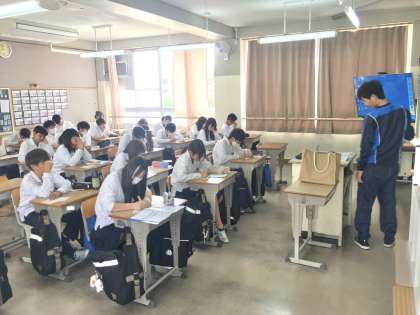 22日(水)、2年生5組の1時間目は、数学の授業でした。