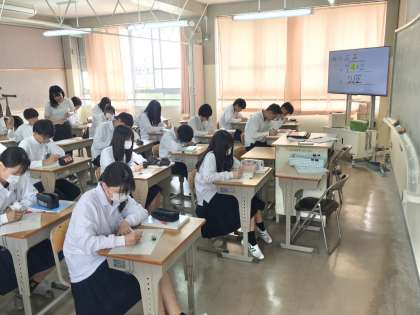 22日(水)、3年生5組の5時間目は、数学の授業でした。