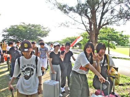 REVIEW:修学旅行35 公開日 2024/06/07 更新日 2024/06/07 学校 3日目、5日(水)、セレモニー後の離村の様子です。民家さんとのお別れの時です。 別れのあさいつは、「行ってらっしゃい!」です。思わず涙ぐむような表情を見せる生徒の姿が見られました。