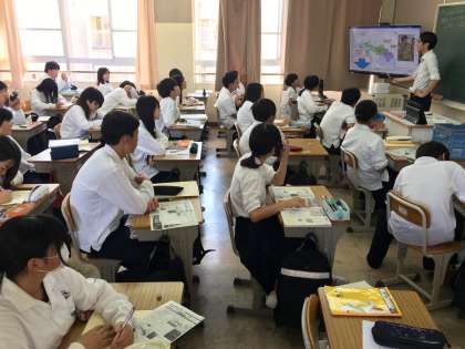 7日(金)、1年生3組の2時間目は、社会の授業でした。