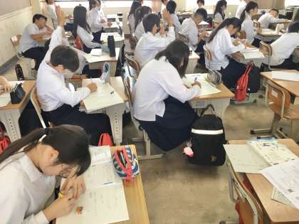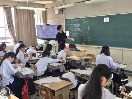 7日(金)、1年生5組の2時間目は、担任の先生による数学の授業でした。