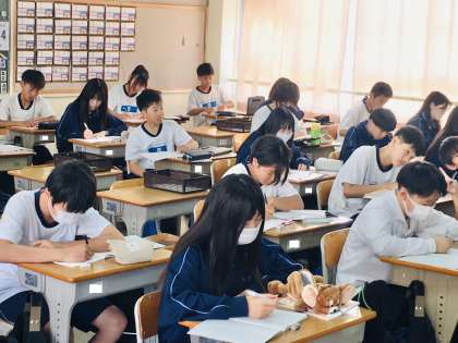 12日(水)、2年生5組の1時間目は、数学の授業でした。