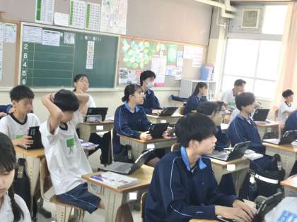 東日本大震災の被災者への支援プロジェクトについて説明された教材「あの日生まれた命」を通して、生徒は、命の尊さについて理解を深めました。