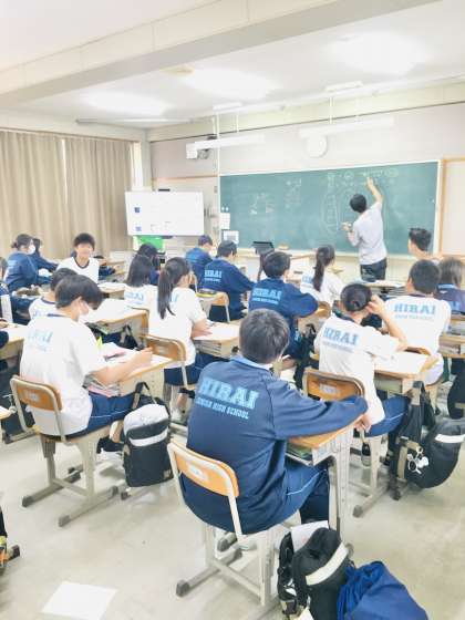 3年生:理科の授業〜イオンの正体〜 公開日 2024/06/13 更新日 2024/06/13 学校 3年生は、理科の授業で、アルカリ性や酸性のもととなるイオンの正体について考えています。 ※写真は、3組の様子です。