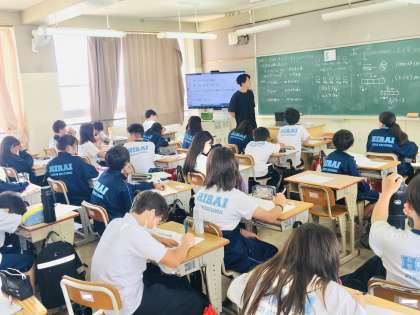 14日(金)、1年生5組の5時間目は、担任の先生による数学の授業でした。