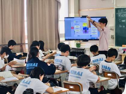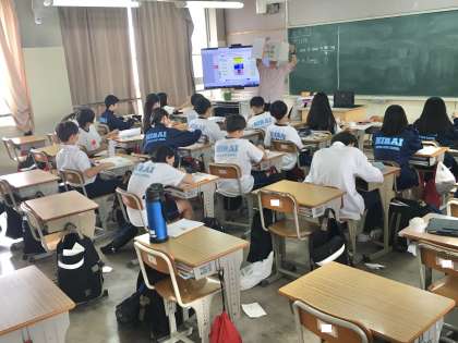 17日(月)、1年生5組の2時間目は、英語の授業でした。