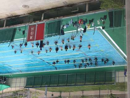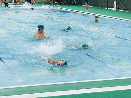 17日(月)、3年生1・2組の2時間目は、保健体育の授業で、水泳実技の学習が行われていました。