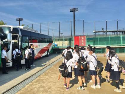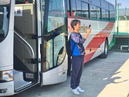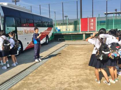 6組生徒の様子です。 「ハイ!チーズ。」乗車前に、写真撮影です。