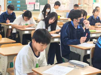 既習事項の復習が行われていました。来週に実施される期末テストに向けて生徒の学習意欲は高まっているようです。