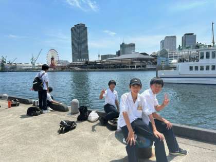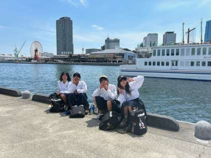 神戸港震災メモリアルパークにて、今なお残る震災被害の現状を見学してから集合場所に来る班もあるようです。