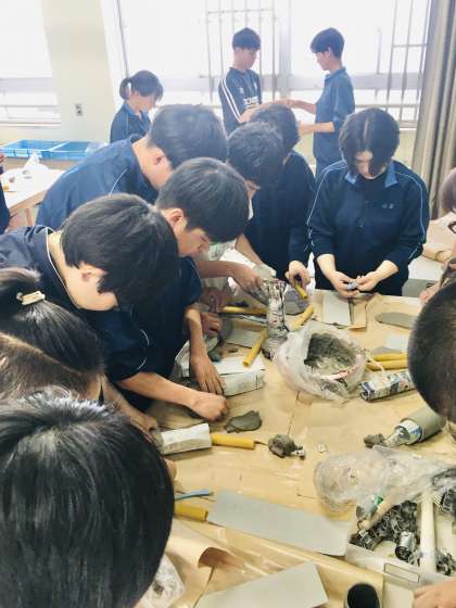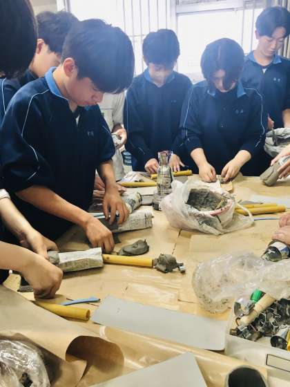 小学校6年生の修学旅行で陶芸体験をしている生徒がいるようで、製作作業は順調に進んでいるようです。