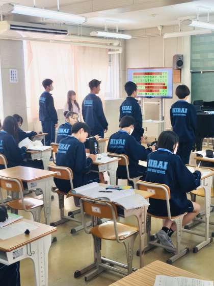 2年生の音楽の授業では、歌唱の実技テストが行われています。