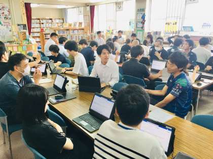 校内研修(授業研究)を行いました! 公開日 2024/06/24 更新日 2024/06/24 学校 24日(月)、生徒自身が学び方を選び、主体的に学びを進める授業づくりについて校内研修(授業研究)を行いました。 参観した授業での1年生の生徒の様子を話し合った後、教育センターの指導主事の方より堺市が推進する「学びのコンパス」の理念についてご教授をいただきました。