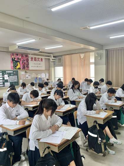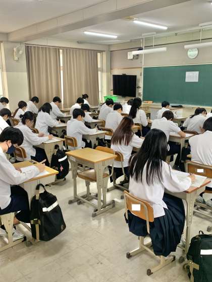 26日(水)、3年生3組のテスト時の様子です。 3時間目の受験教科は、音楽でした。
