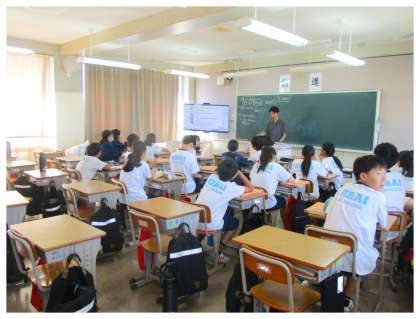 授業は、在籍教室と管理棟(グラウンド側校舎)4階少人数教室で行われています。オープンスクールでお越しの際は、ご注意ください。