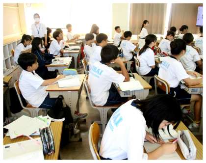 オープンスクール2日目11日(水)、1年生5組の3時間目は、国語の授業でした。