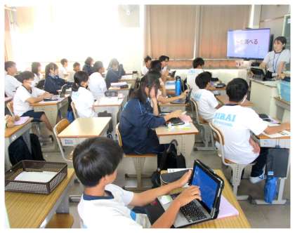 オープンスクール2日目11日(水)、2年生5組の3時間目は、英語の授業でした。