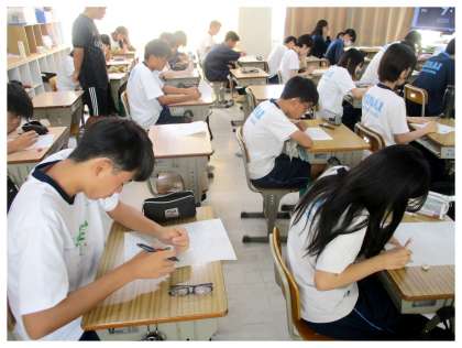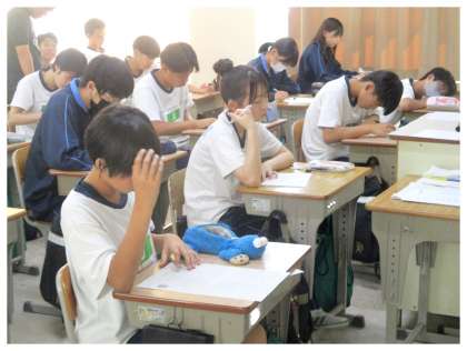オープンスクール最終日12日(木)、3年生5組の1時間目は、担任の先生による英語の授業でした。