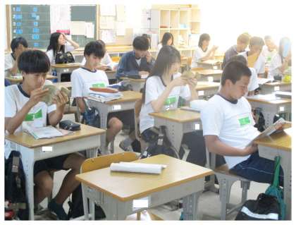 朝の読書活動〜堺・スタンダード〜 公開日 2024/09/18 更新日 2024/09/18 学校 本校では、「堺・スタンダード」の1つ、朝の読書活動に取り組んでいます。 生徒は、静謐な雰囲気で朝の始業時間をむかえることができているようです。 ※写真は、3年生1組の様子です。